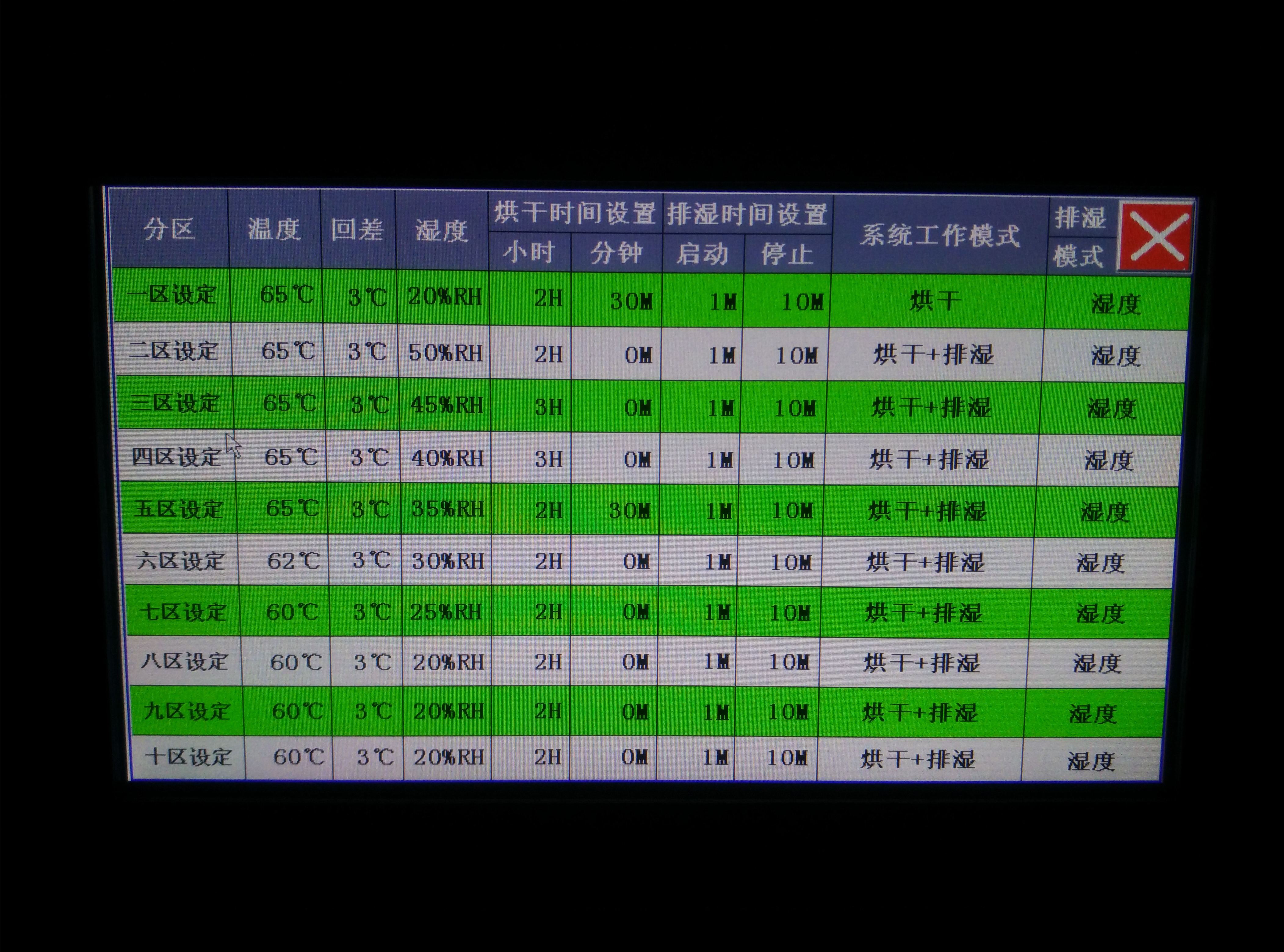 將擺放好黃花菜的物料車推入烘干房內(nèi),設(shè)定好烘干時段,溫度,排濕量,啟動設(shè)備進(jìn)行烘干。